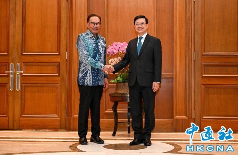 李家超與馬來西亞總理安華(左)會面。 香港中通社圖片 上午,李家超與馬來西亞總理安華會面。李家超指出,香港和馬來西亞的雙邊貿易關係向來密切,去年的雙邊貨物貿易額按年增長7%,達281億美元,令馬來西亞成 香港的第九大貿易夥伴。在東盟十國中,馬來西亞更是香港的第三大貿易夥伴。特區政府會繼續加強與馬來西亞在商貿、投資、創新科技、文化旅遊等方面的合作交流,並感謝馬來西亞支持香港加入《區域全面經濟伙伴關係協定》(RCEP)。 李家超向安華表示,歡迎和感謝馬來西亞政府延長特區護照持有人,前往馬來西亞旅遊的免簽證入境期限,由目前最長一個月延長至90天。有關安排給予特區護照持有人更大的入境便利,將進一步加強兩地的聯繫,互利共贏。 其後,李家超出席由中華人民共和國駐馬來西亞特命全權大使歐陽玉靖所設的午宴。他感謝歐陽大使及大使館為這次訪問作悉心安排,以及一直支持特區政府爭取盡早加入《區域全面經濟伙伴關係協定》的工作。 晚上,李家超一行與馬來西亞全國工商總會成員共進晚餐。李家超指出,香港與馬來西亞在貿易、投資等領域的合作有龐大的發展潛力,香港駐雅加達經濟貿易辦事處將繼續與商會商界緊密合作,加強雙邊關係。 28日,李家超將繼續在吉隆坡到訪當地企業,並出席由特區政府與香港貿發局主辦的商務午餐會,與當地商界領袖會面交流。(完) 【編輯:王瑶】