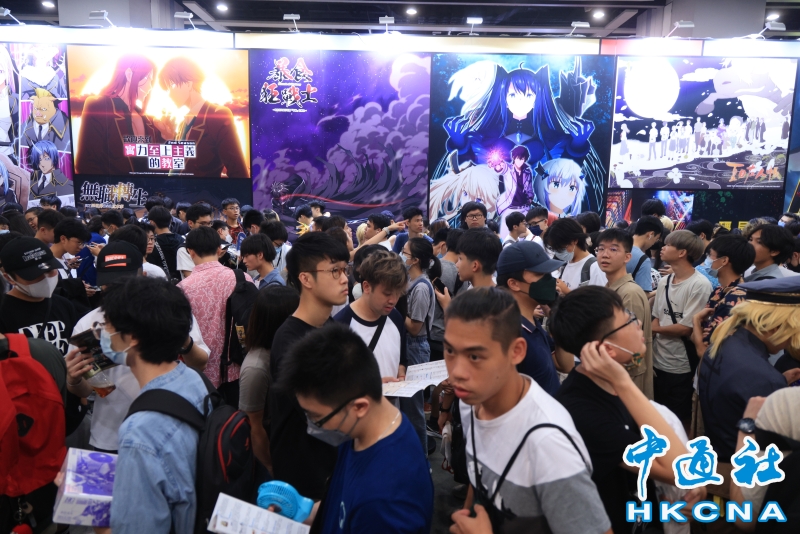 第24屆香港動漫電玩節7月28日起一連5日在香港會展中心舉行。本屆香港動漫電玩節展場總面積達19890平方米,有122間參展商參展、共有589個展位,同人區攤位數達 242 格,集合最受歡迎的動畫、漫畫、電玩、遊戲、玩具模型、精品及一系列多元的精采表演活動。同期舉行的潮巨匠藝術玩具展更集合了不同潮流及巨匠設計藝術家的作品。圖為大批漫迷入場。(香港中通社記者 許其皓攝) 香港中通社圖片