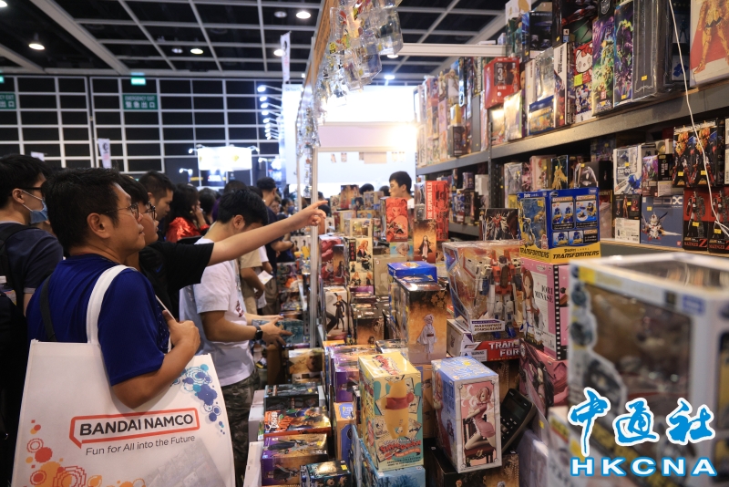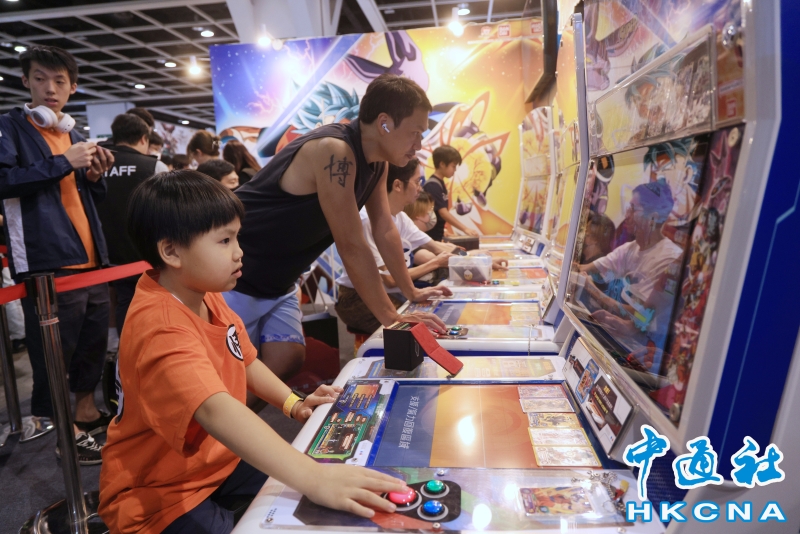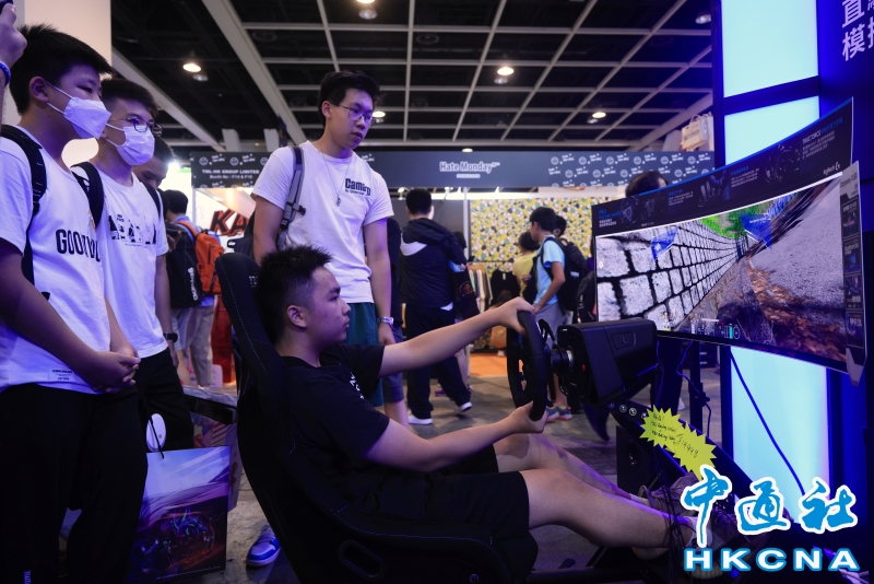 第24屆香港動漫電玩節7月28日起一連5日在香港會展中心舉行。本屆香港動漫電玩節展場總面積達19890平方米,有122間參展商參展、共有589個展位,同人區攤位數達242格,集合最受歡迎的動畫、漫畫、電玩、遊戲、玩具模型、精品及一系列多元的精采表演活動。同期舉行的潮巨匠藝術玩具展更集合了不同潮流及巨匠設計藝術家的作品。圖為市民體驗電動遊戲。(香港中通社記者 許其皓攝) 香港中通社圖片