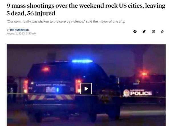 美國廣播公司(ABC)8月1日報道,在過去的周末,美國至少發生了9起大規模槍擊案件,造成5人死亡、56人受傷。圖片來源:海外網 海外網引述美國Axios在線新聞報道,數據顯示,今年美國各地槍支暴力事件已造成多達2.5萬人死亡,相當於平均每天有118人死於槍支暴力,其中包括1名0至11歲的兒童和超過4名12至17歲青少年。此外,今年還有超過2.2萬人因槍支暴力而受傷,其中包括400多名兒童和2400名青少年。 然而,這些統計數據并不能反映美國槍支暴力流行的完整範圍,統計數據不包括數千名失去孩子的父母,也不包括數千個永遠消失於槍支暴力之中的家庭。報告進一步表示,這些數據也不足以凸顯“槍支暴力造成數千起傷害事件的嚴重性”。 GVA將大規模槍擊事件定義為不包括槍手的至少有四人被槍擊身亡或受傷事件。發生最多大規模槍擊事件的年份是2021年,當年到7月末,全美共發生401起大規模槍擊事件,全年平均每天發生1.9起。 吉福德預防槍支暴力法律中心(GiffordsLawCentertoPreventGunViolence)研究主任凱利·德雷恩(KellyDrane)指出,槍支暴力給美國造成了巨大的損失,是所有美國人共同承擔的代價。 最近的民意調查顯示,大多數美國選民支持采取額外的控槍措施來防止槍支暴力,該問題已經成為公眾最為關心的健康問題。 “事實上,我們都知道槍支暴力是完全可以預防和阻止的。”德雷恩說,“我們可以做很多事來減少這個國家槍支暴力發生的頻率和致命性。但是,有些受制於或依賴於槍支游說團體或其他特殊利益集團的公職人員卻阻礙(控槍)政策的通過,從而獲取既得利益。” 美國全國廣播公司新聞網(NBCNews)近日報道稱,自1966年以來,美國半數以上的大規模槍擊事件發生在過去20年中。根據7月27日發表在《美國醫學會雜誌:網絡開放》(JAMANetworkOpen)的一項研究,從2014年到2022年,美國共發生了約4000起大規模槍擊。研究顯示,總體而言,美國東南各州大規模槍擊事件發生率最高,例如亞拉巴馬、肯塔基、南卡羅來納等州。(綜合海外網、中國日報等報道) 【編輯:紀東】