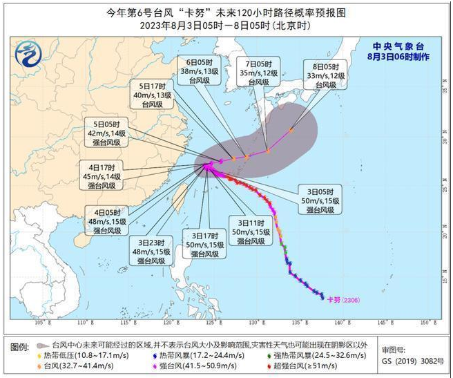 圖源:中央氣象台 受“卡努”影響,今天,南海大部、北部灣、台灣海峽、巴士海峽、台灣以東洋面、東海及釣魚島附近海域以及長江口區、杭州灣、浙江沿海、福建沿海、台灣島沿海將有6~8級、陣風9~10級的大風,其中台灣以東洋面部分海域、東海南部及釣魚島附近海域風力可達9~12級、陣風13~14級,“卡努”中心經過的附近海域風力有13~15級、陣風16~17級。台灣島部分地區將有大到暴雨,局地有大暴雨(150毫米)。 又據台灣氣象台預報,超強颱風“卡努”預計今晚(3日)到明日清晨最接近當地,北部地區晚上開始風勢明顯增強,4個縣市宣布今日停工停課,包括台北、新北、基隆和宜蘭,股市休市。