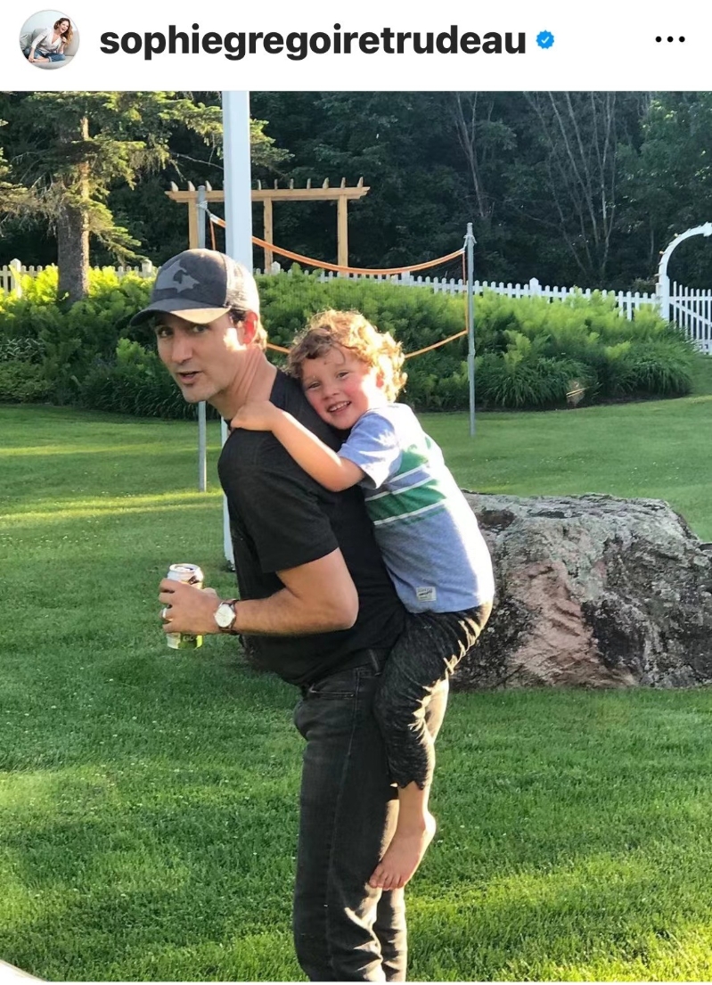 特魯多的Instagram5月14日(母親節)上載與蘇菲和母親的合影。