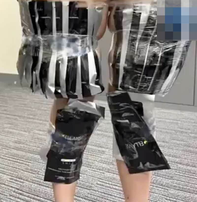 “海關發布”微博影片截圖。 人員發現該名女子以長裙作掩護,使用膠紙將“少女針”綁藏在其大腿及小腿處,經清點合共發現40支“少女針”。 目前,該案件已移交深圳海關處置部門作進一步處理。 根據《中華人民共和國海關行政處罰實施條例》第七條規定,經過設立海關的地點,以藏匿、偽裝、瞞報、偽報或者其他方式逃避海關監管,運輸、攜帶、郵寄國家禁止或者限制進出境的貨物、物品或者依法應當繳納稅款的貨物、物品進出境的,均為走私行為,將受到相應的法律制裁。 “少女針”是一種注射用的膠原蛋白美容針劑,主要成分包括3聚己內酯 (PCL),和生物降解材料凝膠載體(CMC)。(完) 【編輯:孟宜君】