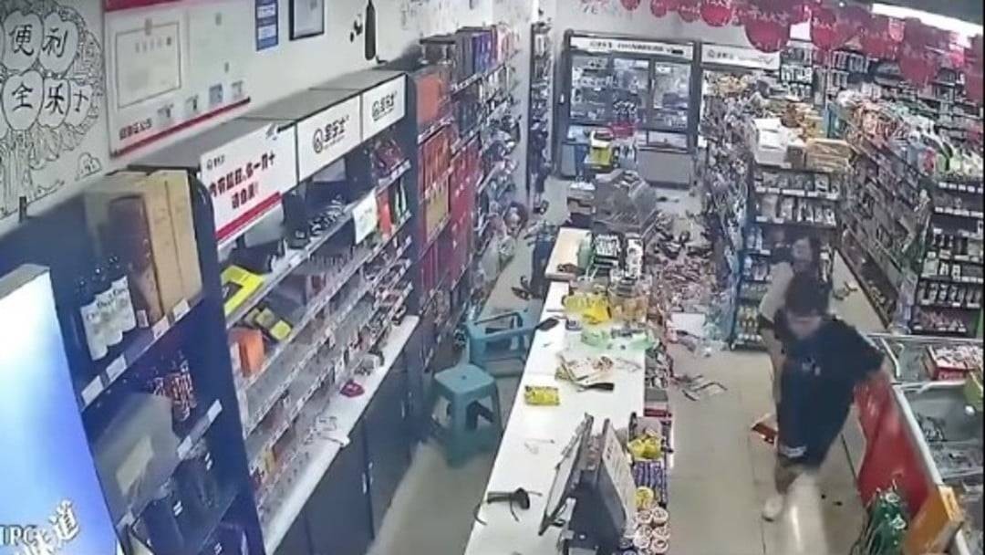 圖為地震發生時的監控畫面截圖:當地一家超市內物品散落一地,人員正在往外逃離。圖自網絡 8月6日2時33分:山東德州市平原縣發生5.5級地震 震源深度10千米 中國地震台網正式測定:08月06日02時33分在山東德州市平原縣(北緯37.16度,東經116.34度)發生5.5級地震,震源深度10千米。 8月6日3時09分:山東德州市平原縣發生3.0級地震 震源深度9千米