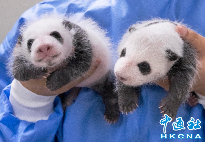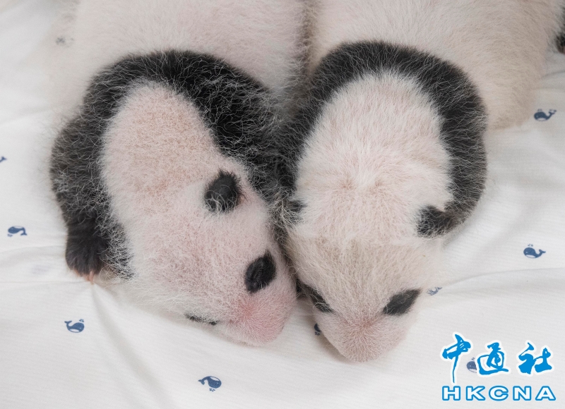 •   當地時間8月7日,韓國三星愛寶樂園公佈雌性雙胞胎大熊貓幼崽(左為姐姐,右為妹妹)於6日拍攝的滿月照。 香港中通社圖片