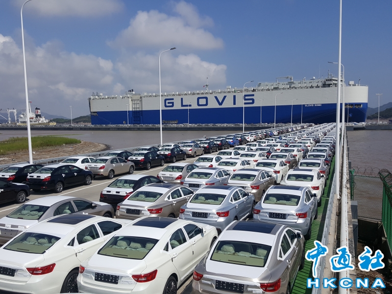 •   中國汽車工業協會的數據顯示,主要企業的汽車出口量在1到6月年增76%,達到214萬輛。日本汽車工業協會發布的同一時期日本汽車出口量為202萬輛,年增17%,中國首次超過日本。資料圖為寧波舟山港梅山港區梅西滾裝碼頭,一輛輛嶄新的國產汽車井然有序地駛入“GLOVIS SONIC”滾裝船中。 香港中通社圖片