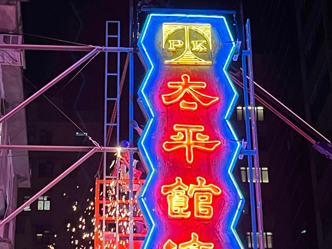 工人拆除佐敦分店的霓虹招牌。霓虹黯色fb圖片 “太平館餐廳”於1860年在廣州太平沙開設,是當地首間華人經營的西餐館。上世紀五十年代,“太平館餐廳”擴展至香港,先後在油麻地、中環、尖沙咀、銅鑼灣等地開設分店,主打豉油港式西餐,招牌菜包括瑞士汁炒牛河、瑞士汁雞翼等,吸引了不少名人及作家,包括亦舒、小思、李碧華等,連被譽為“香港四大才子”的金庸、倪匡、黃霑及蔡瀾亦曾經光顧。 翻查資料,早在1920年代,已有不少生意人開始在唐樓上層安裝各類霓虹燈,以五光十色、創意十足的燈影招攬顧客。直到二戰後,霓虹燈招牌更加在香港發揚光大。當時,諸多工廠和車間競相製作出設計美觀、工藝精湛的玻璃燈管,這才成就了香港燈火璀璨的繁華夜景。 而近一個世紀以來,閃爍的霓虹燈點亮香港夜色,也交織出香港這獨特的街角風景。然而隨著時代變遷,社會的發展,市場陸續出現更平價的代替產品,香港的霓虹燈亦逐漸消失,僅在2009年就有超過4000個招牌被拆除。 曾經啟發無數技工將工藝升華至大師級的輝煌行業,如今幾乎列不出10個師傅。香港持續的大規模霓虹招牌清拆導致獨特的街景完全沒落,城中最輝煌的萬紫千紅已經銷聲匿跡,被熄滅成零星餘燼。(完) 【編輯:孟宜君】