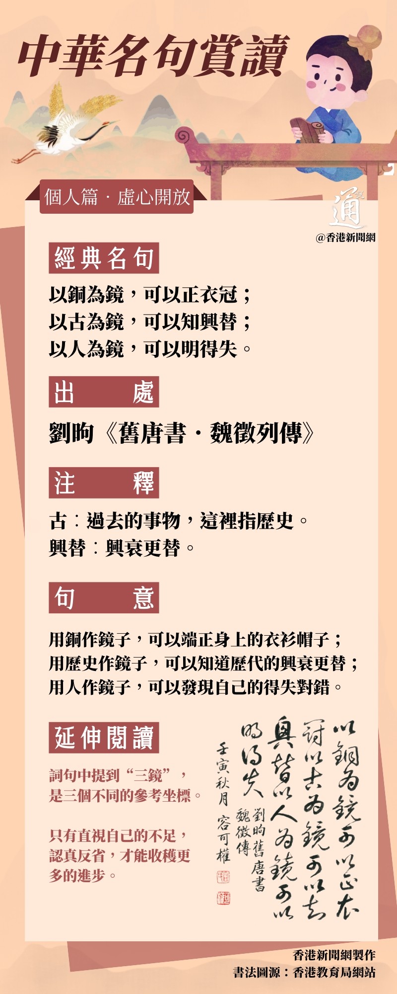 中華名句賞讀|個人篇•以銅為鏡;以古為鏡;以人為鏡分享到: