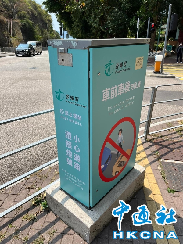•   香港運輸署13日表示,署方正陸續為交通燈控制器換上新衣,貼上多款帶有不同道路安全標語的全身宣傳畫貼,提醒道路使用者注意道路安全,以減低交通意外發生。圖為美化後的交通燈控制器,貼上小心過馬路的信息。 香港中通社圖片