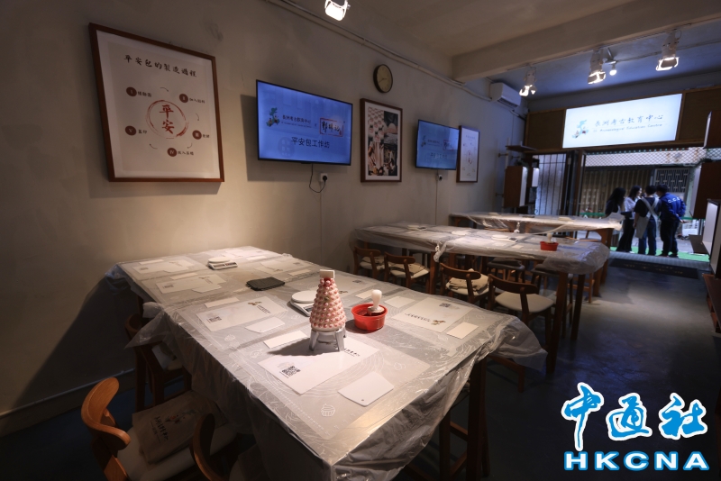 8月18日,香港長洲戲院多元文化園區舉行傳媒預展。於1931年落成的長洲戲院,直至1997年結業,2023年長洲戲院完成第一期活化以多元文化園區呈獻給公眾,園區將於8月21日試業。長洲戲院多元文化園區超過3800呎,共分4大主題空間:“長洲文化館”、“啞鈴資訊中心”、 “1931 影棚”、“銀幕大笪地”,將教育、旅遊和藝術等三大元素結合。透過一系列探討香港文化歷史主題展覽及體驗活動,認識社區歷史的興趣和探索,為島民及旅客帶來更豐富、更多元化的文化生活。圖為平安包工作坊。(香港中通社記者 許其皓攝) 香港中通社圖片