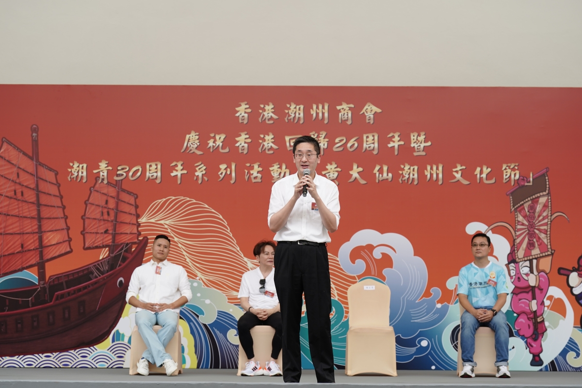 主禮嘉賓商務及經濟發展局副局長陳百里表示,感謝主辦方香港潮州商會舉辦是次活動讓香港市民,特別是黃大仙的街坊可以感受潮汕文化、品嚐潮州美食 。香港作為一個中西文化中心,透過不同管道推廣相關文化。