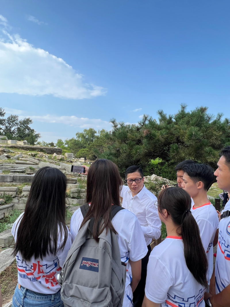 鄧炳強8月20日與青年學員到訪圓明園遺址公園。 圖自香港特區政府新聞處 參訪團20日下午也到訪清華大學,讓青年學員瞭解升學途徑,并參觀校園及校史館。鄧炳強與清華大學黨委書記邱勇教授會面及拜訪公共管理學院,他感謝校方對保安局的青年項目及其轄下紀律部隊一直大力支持,為香港紀律部隊培育優秀的公共管理人才。 據悉,鄧炳強於20日傍晚返港;而參訪團將於今天(21日)參觀北京公安局警犬基地,認識內地警犬繁育和訓練工作,圓滿結束為期8日西安、延安和北京之行。(完) 【編輯:許豐悅】