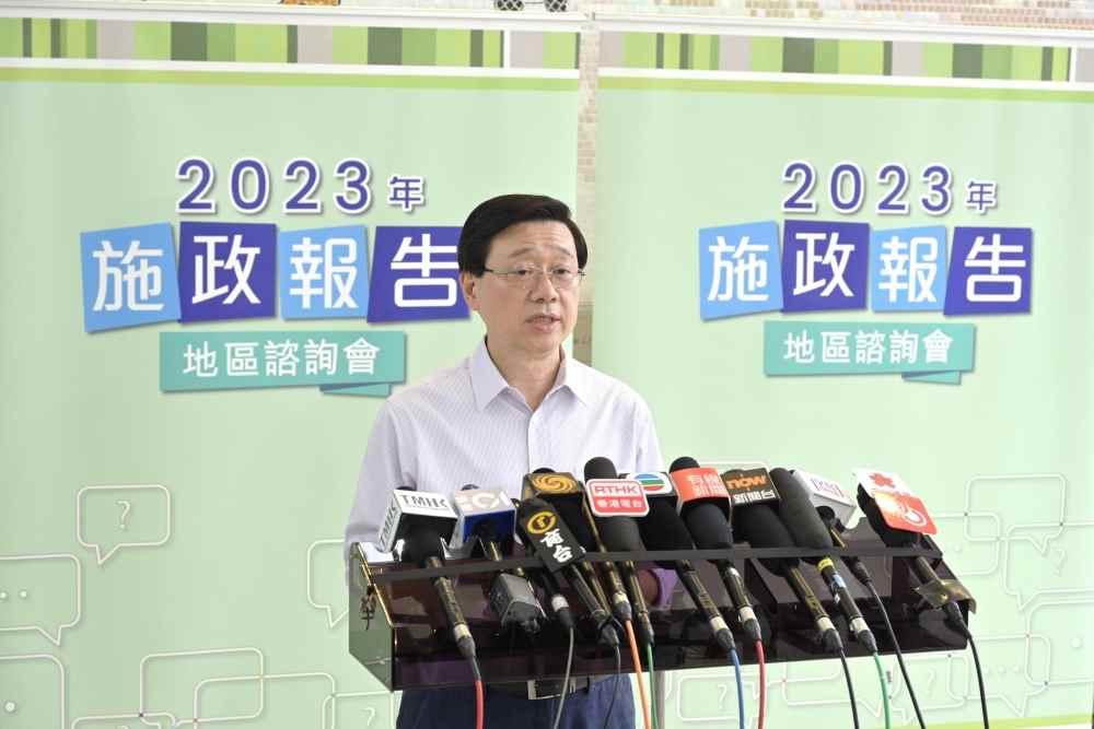 香港中通社圖片 當天,李家超率領司局級官員出席2023年施政報告的第二場地區諮詢會,繼續聽取地區人士的意見和建議。活動在沙田官立中學舉行,約120位來自不同背景的市民出席。 他提到,香港作為國際金融中心,股票市場發揮的作用非常重要,財政司司長將成立工作小組,專責研究如何增加股票市場的流動性,並於本星期宣佈小組細節及工作。 地區諮詢會歷時兩小時,第一部分由行政長官和官員聽取市民發表意見,觸及的議題相當廣泛,包括土地房屋、交通運輸、金融貿易、文化藝術、就業、教育、青年、扶貧、醫療和社福等。第二部分是小組討論,市民分為四組,分別圍繞“拼經濟”和“為民生”兩個主題與司長、副司長和局長進行深入討論。行政長官輪流與每個小組的市民交流,聆聽意見。 李家超一連兩個周日舉行地區諮詢會,他在論壇結束後會見傳媒為兩場地區諮詢會作出總結。“不少市民對土地房屋、本地人才培訓、青年創業、生育託兒照顧等議題表達關注及提供意見,另外亦有出席者關注香港經濟前景、夜間活動、醫療社福及文化藝術發展等。” 他感謝市民在兩場地區諮詢會中提出的寶貴意見和建議。“大家普遍支持及認同政府第一份施政報告的方針及政策,期望能落實相關政策之餘,亦可‘做深、做大’,以及繼續探索新領域、新議題。未來數星期,將走入社區與市民見面,繼續就施政報告作出諮詢,務求多聽意見。” 另外,李家超亦就政府官員出席主禮活動的模式提出新建議。“過去有不少活動主辦單位會同時邀請多位司局長及同事出席,我希望借此機會建立新共識,希望籌辦組織日後主辦活動時,不要著眼出席官員的數目,只要有政府官員出席,已代表政府的支持,我和司局長在政府內部都會有分工,政府團隊會互補和相互配合出席這些主禮活動。”(完) 【編輯:张丽欣】