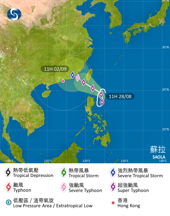 香港新聞網8月28日電 強颱風“蘇拉”已增強為超強颱風。香港天文台今天(28日)表示,按照現時預測路徑,“蘇拉”會在本周三(30日)稍後進入本港800公里範圍內,會在周中至後期評估是否需要發出熱帶氣旋警告信號。