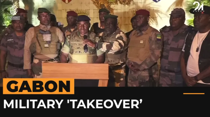 加蓬軍人宣佈接管政府。圖源:半島電視台 8月30日凌晨,加蓬選舉中心宣布,加蓬總統邦戈在26日舉行的總統選舉中以64.27%的得票率獲得連任。隨後,十餘名軍方人員以“機構過渡和恢複委員會”的名義在加蓬24電視台發表聲明宣稱選舉結果無效,并稱已獲取政權,國家機關解散,同時關閉該國邊境。“機構過渡和恢複委員會”之後在國家電視台發表聲明稱邦戈已被軟禁。加蓬總統的兒子及總統府多名高官因“叛國”、“貪污”等罪名已被拘留。 加蓬在非洲的主要盟友之一摩洛哥呼籲維護中非加蓬的穩定,摩洛哥外交部在一份聲明中表示,“正在密切關注加蓬共和國局勢的演變”。 8月30日,中國外交部發言人汪文斌就加蓬目前政治局勢表示,中方密切關注加蓬形勢發展,呼籲加蓬相關方從國家和人民根本利益出發,通過對話和平解決分歧,盡快恢複正常秩序,確保邦戈總統人身安全,維護國家和平穩定和發展大局。 中國駐加蓬大使館30日發佈領事提醒說,鑒於當前加蓬局勢,使館已啟動重大突發事件應急機制。使館提醒所有在加中國公民居家不外出,遇有緊急情況,及時同使館聯繫。希我同胞守望相助、共度時艱。 駐加蓬使館領事保護與協助電話:+241-66150928或+241-077071758 外交部全球領事保護與服務熱線(24小時):+86-10-12308或+86-10-65612308(完) 【編輯:王軼南】