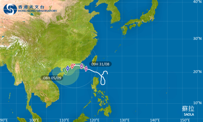 香港天文台圖片。 而根據天文台最新的預測路徑,“蘇拉”會在明日(9月1日)至後日(9月2日)相當接近珠江口一帶,香港天氣將會轉壞,有狂風大驟雨,“蘇拉”亦會為沿岸低窪地區帶來風暴潮。而天文台未來九天天氣預報亦預料,明日香港吹北至西北風6至7級,後轉東北風10級暴風程度,而離岸及高地更達12級颶風程度,即平均每小時風速超過118公里;而周六(9月2日)則吹東至東南風10級,初時離岸及高地達12級,稍後東至東南風8至9級。 天文台預告,蘇拉明日(9月1日)稍後會相當接近本港,對本港構成威脅,會在明日改發八號烈風或暴風信號。預料本港明日日間天氣顯著轉壞,有狂風大驟雨,風勢猛烈。 而明天正值新學期開學日,香港教育局表示會密切留意天氣狀況,盡早作出停課安排。有小學召開危機處理小組會議,商討惡劣天氣下本地及跨境學生的安排。有校長表示,除了留意教育局宣布外,亦要考慮學生居住地點,強調會以安全為首選。 身兼小學校長的立法會教育界議員朱國強就建議,教育局要與天文台保持溝通,並視乎颱風移動路徑,考慮是否提早宣布停課或相關安排,以保障學生的安全。同時家長亦應時刻留意天氣狀況,當遇上惡劣天氣時要與子女留在家中,切勿外出“追風”。 回顧近年,香港曾有兩個超級颱風“西登”,分別是“天鴿”及“山竹”,天文台均曾發出十號颶風信號,期間香港多處發生水浸塌樹等。其中“山竹”吹襲香港時,更造成至少458人受傷,另有6萬宗塌樹。 而根據紀錄,自1946年以來共有5次開學日遇上打風。當中包括1962年“溫黛”襲港,天文台於當年的9月1日早上6時許發出十號颶風信號,全港學校停課。“溫黛”是自二戰後吹襲香港最強的颱風,共造成183人死、388人傷、108人失蹤。(完) 【編輯:孟宜君】