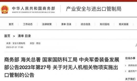 香港新聞網9月1日電 據中國商務部此前消息,為維護國家安全和利益,經中國國務院、中央軍委批准,中國決定對特定無人駕駛航空飛行器及其相關設備實施臨時出口管制。 這些措施自9月1日起正式實施,有效期為兩年。