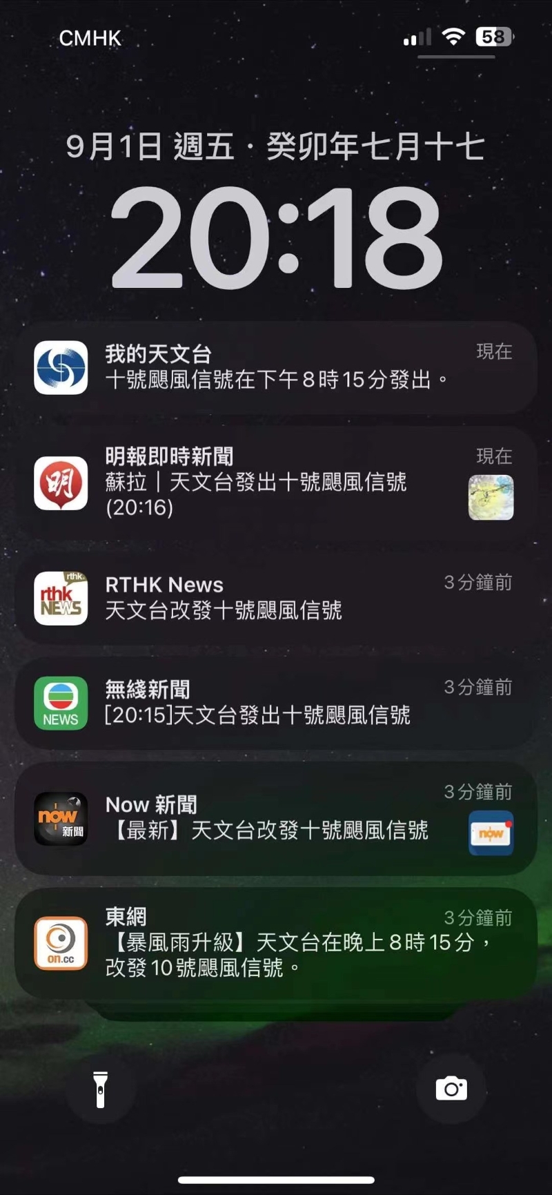 風急雨驟。 那排山倒海的氣勢,仿佛一切都得聽它的發令,而香港嚴陣以待,從政府到市民共同防風防水防危險。 晚上8時15分,香港天文台發出了今年首個最高級別的十號風球。 幾乎同步時間,所有香港主流媒體都以跳出通知的方式轉發天文台十號風球的信息,整齊的步伐震動人們的手機與所有現代通訊設備。