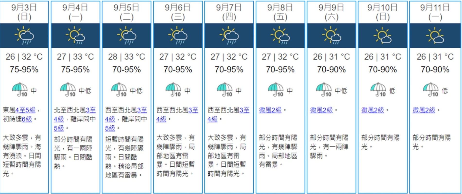 未來一周天氣預測。圖源:天文台。 【編輯:錢林霞】
