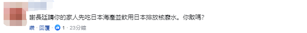 “謝長廷,請你的家人先吃日本海產并飲用日本排放核廢水,你敢嗎?”