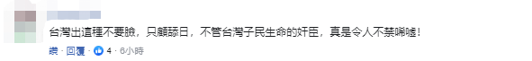 “台灣出這種不要臉,只顧舔日,不管台灣民眾生命的奸臣,真是令人不禁唏噓!”