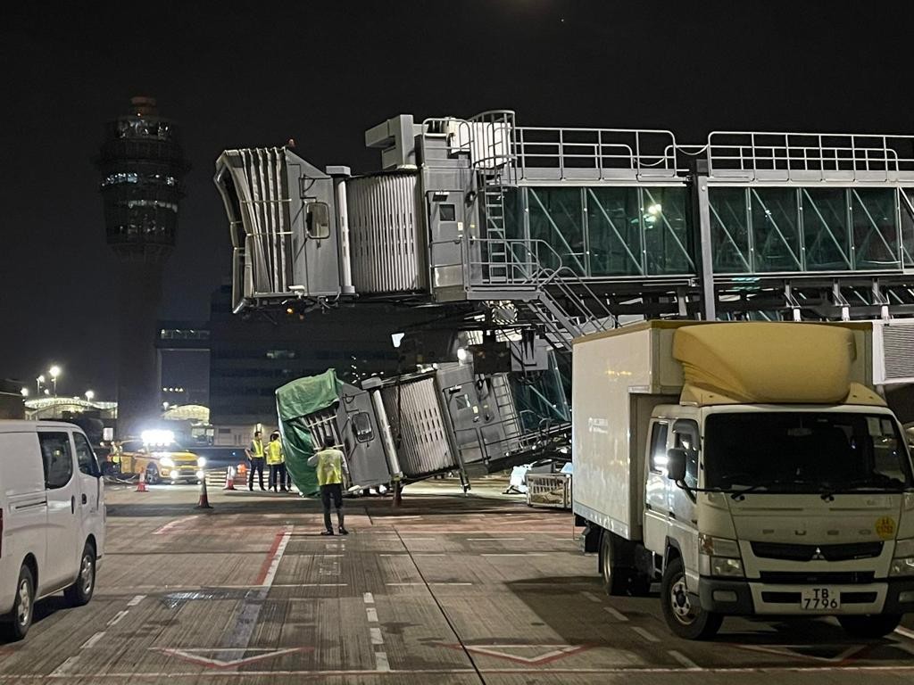 香港新聞網9月5日電 香港國際機場中場客運廊昨晚(4日)一條登機橋緩慢下降至地面,機管局初步調查顯示,受到日前超強颱風影響,登機橋安全設施的控制箱因入水而產生短路,引致登機橋內置的安全裝置自動啟動,將登機橋緩慢下降至地面,現時有關登機橋已恢復至正常位置並進行進一步的維修檢查。