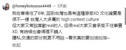 還有台灣網友反擊道:“香港人最大的缺點就是太臭屁,難相處”,“香港人就是自以為是,在公共場所最聒噪!” 也有網友表示不服:“死不認錯是日本人吧?” 不少網友認為影片太斷章取義,并不認同兩人的看法。不過,也有網友客觀理性看待,認為“沒有優缺點,只是風土民情不一樣而已”,“文化跟說話方式不同”、“以前覺得香港人很沒禮貌太直接,現在知道真的只是文化不同”。 【編輯:俞丹鳳】