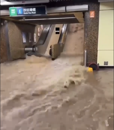 香港多區自昨晚起出現嚴重水浸,其中連接筲箕灣至柴灣的柴灣道更變身成“柴灣河”,柴灣環翠道近興華一邨猶如山洪暴發,大量雨水沿斜路沖至迴旋處,甚至有人拍到市民被水流沖走。環翠邨停車場更被雨水掩沒。另外,多條隧道亦出現水浸,其中尖山隧道水深至半輛車高,道路封閉,部分汽車出現故障停在路邊,亦有巴士行駛期間遭雨水湧入車廂。而黃大仙、彩虹、柴灣等多個地鐵站雨水倒灌,部分人要涉水而行。