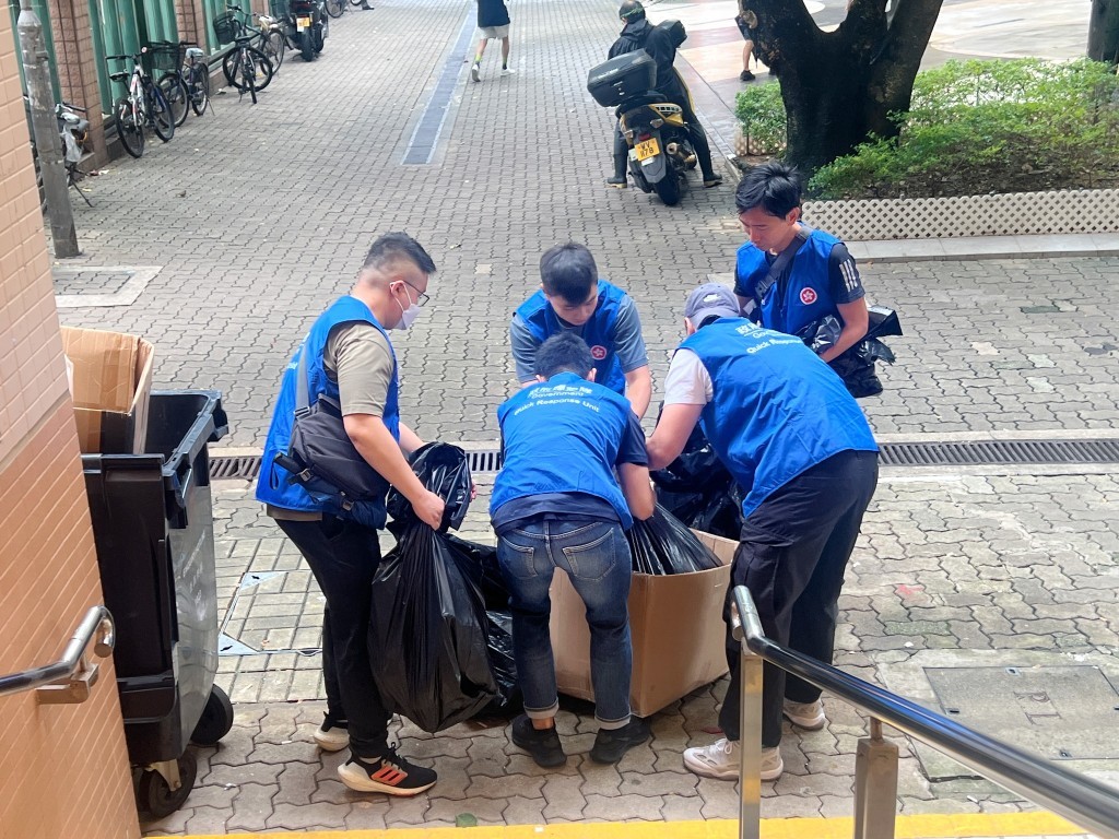 (廉署9日調派一批職員加入“政府應急隊” 圖源:廉署Facebook) 亦有政府人員到北區羅湖道,協助清理路上水窪和泥濘。政務司司長陳國基和民青局副局長梁宏正到場視察,為公務員打氣。 陳國基指,打鼓嶺羅湖村受暴雨影響,部分地方出現水浸和山泥傾瀉,政府人員、村民和義工等已開通相關道路,希望此次動員能加快餘下善後工作,讓村民早日恢復正常生活。 陳國基稱,此次暴雨百年一遇,來得很急很大,政府上下由應急、救援到善後,沒有半點鬆懈,一直全力應對。他再次感謝所有在極端天氣下緊守崗位的政策局和部門同事,發揮專業高效的精神,致力維持緊急服務和應對突發事故,將暴雨和水災為香港帶來的破壞和影響減至最低,守護好香港這個共同家園。