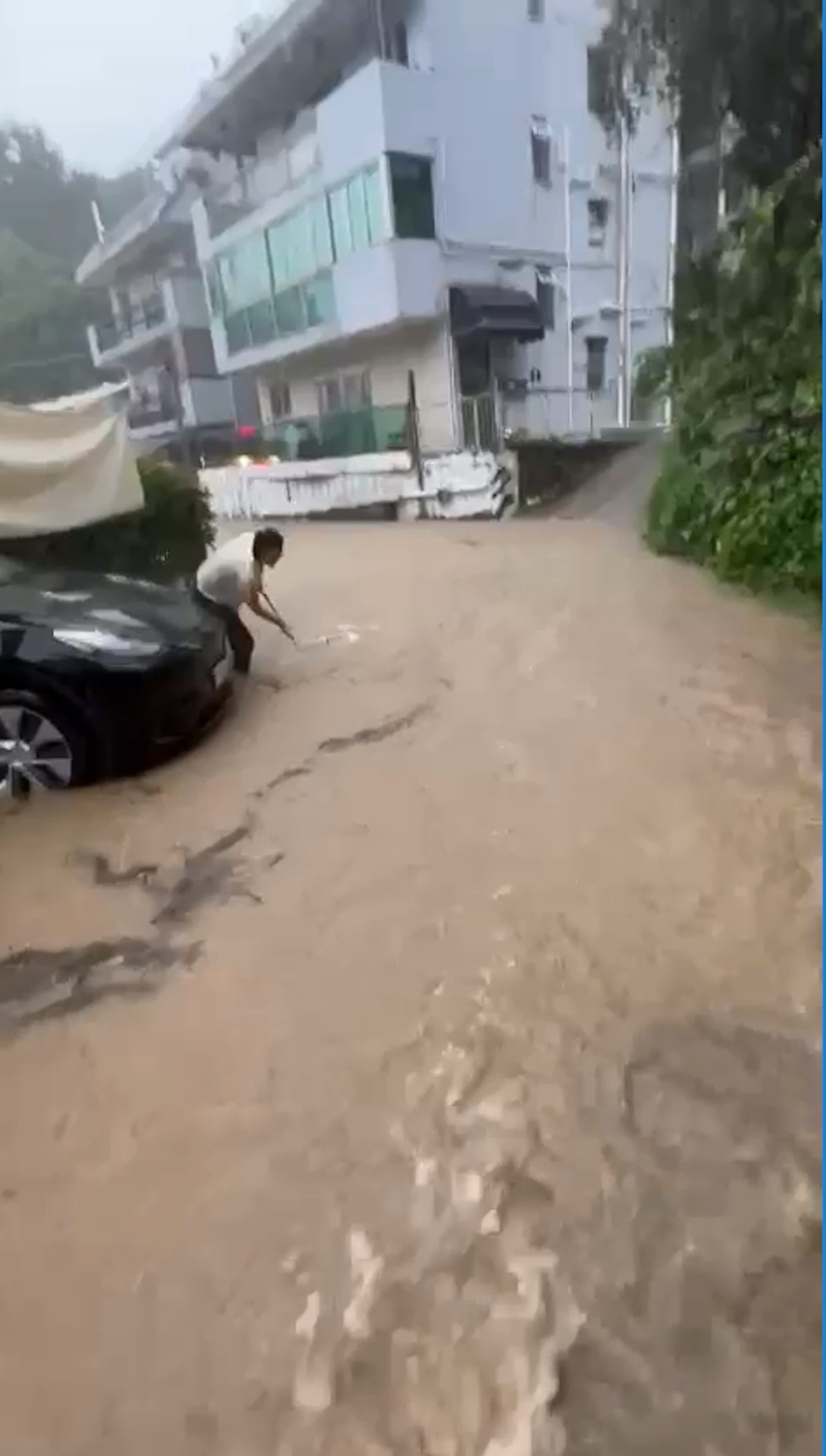 香港新聞網9月11日電 香港今天(11日)再有暴雨,多區出現水浸。當中將軍澳及觀塘等地成為重災區。 香港天文台今早先後向沙田、西貢及大埔發出大雨提示。其中,沙田區雨勢特別大,在12時45分的過去一小時,已錄得超過80毫米雨量有可能出現嚴重水浸。西貢在截至早上9時50分的一小時,錄得超過100毫米雨量。 延伸閱讀: 受大雨影響,今早10時許,西貢馬游塘村尚賢花園一幢村屋外,有一道約1米乘10米的磚牆倒塌。警方及消防到場處理,事件中沒有人受傷。從網上流傳片段可見,馬遊塘村水浸最嚴重時水深及膝,如同澤國。村民舉步維艱,洪水不斷由上游流向低地。