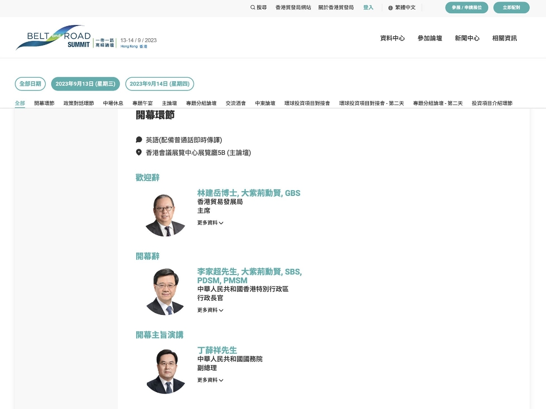 (網站截圖) 李家超致開幕辭時表示,今年是“一帶一路”倡議10周年,香港一直是“一帶一路”的倡議者、貢獻者及受益者,堅定推動“一帶一路”藍圖的實現。此次論壇是在疫情後首次以實體形式舉行,有約6000多人參加,來自70多個國家地區,超過100多個海外及內地代表團出席,簽署合作備忘錄的數目亦較過去多,這些創紀錄的數字說明香港已重返世界舞台。 李家超指,已有逾150個國家及30多個國際組織簽署合作備忘錄,與國家一同推動“一帶一路”發展,實現3000多個合作項目,超過一萬億美元的投資,提高了基礎設施及人民生活水平。香港在“一國兩制”優勢下,連接內地和國際,未來會不斷加強與“一帶一路”伙伴於不同領域合作,涵蓋貿易投資、創新科技及基建發展等。 此外,李家超指,早前率領代表團出訪中東和東盟,簽署多份合作備忘錄,有信心香港在國家支持下,爭取加入區域全面經濟夥伴協定,即RCEP,在推動區內國家經濟合作方面作出貢獻。此次論壇,香港亦會與內地簽署兩份涉及水質管理和環境的合作備忘錄。