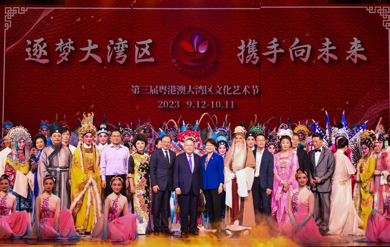 香港新聞網9月13日電 第三屆“粵港澳大灣區文化藝術節”昨晚(12日)於廣州友誼劇院舉行開幕式,三地優秀戲曲藝術家和藝團連袂帶來別出心裁的戲曲演出,率先為文化藝術節打響頭炮。康樂及文化事務署(康文署)共籌劃8項節目於文化藝術節期間在香港及大灣區城市舉行,涵蓋粵劇、音樂、舞蹈、中秋綵燈會和展覽。本地藝術家和藝團參與其中,共同推動大灣區內文化藝術交流,弘揚嶺南文化。