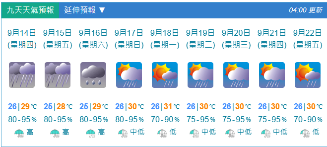 未來8日天氣預報 (圖源:香港天文台) 【編輯:錢林霞】