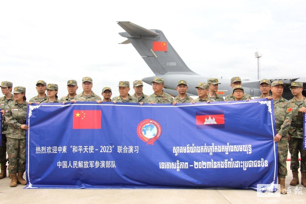 中方參演部隊抵達金邊。圖源:柬中時報 另據報道,參加柬中“和平天使-2023年”聯演的中方參演部隊也在洪馬耐抵京同日到達金邊。聯和軍演將於9月14日至26日舉行,為期13天。此次軍演為衛生後勤聯演聯訓,將幫助柬埔寨提升應對突發性公共衛生事件的能力。聯演期間,中方參演部隊將在金邊和暹粒省舉行義診活動。(完) 【編輯:王軼南】