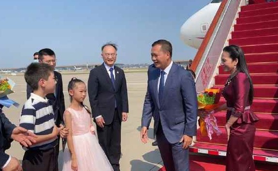 洪馬耐總理抵達北京。圖源:柬中時報 今年正值中柬建交65周年和“中柬友好年”,中國外交部發言人毛寧11日表示,中方期待通過此訪通盤謀劃今後一個時期中柬全面戰略合作,特別是推動“工業發展走廊”和“魚米走廊”等合作倡議盡快落地見效,以高質量、高水平、高標準建設新時代中柬命運共同體。 結束正式訪問行程後,洪瑪耐將於16日至17日出席第20屆中國-東盟博覽會(東博會)和中國-東盟商務與投資峰會開幕。