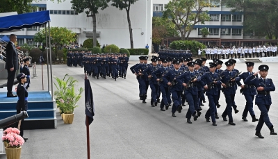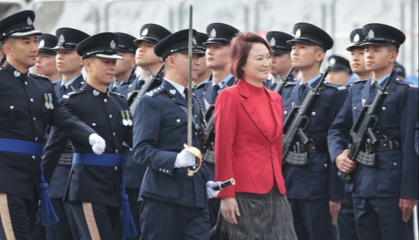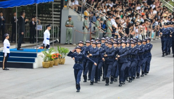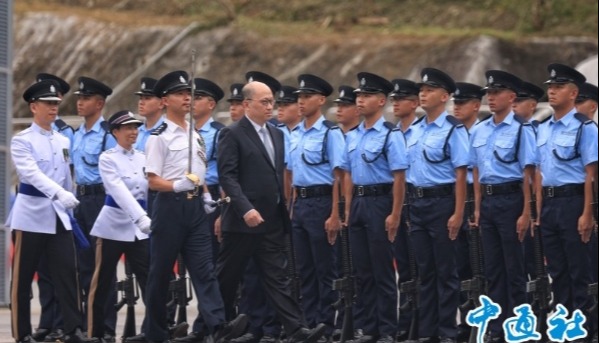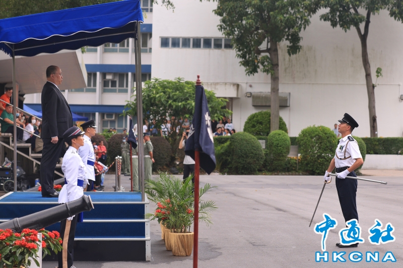 香港警察學院9月16日舉行結業會操,香港中聯辦主任鄭雁雄在典禮中檢閱畢業的見習督察和學警。(香港中通社記者 許其皓攝) 香港中通社圖片 鄭雁雄指警隊為香港從由亂到治、走向由治及興作出重大貢獻,以實際行動忠誠勇毅、心繫社會,寫在護國安崗章程,寫在捍衛法治的前沿,寫在為民解難的一線,得到中央政府和香港各界的高度評價和充分肯定,不愧為忠勇之師、文明之師,無愧為香港衛士國家工程。