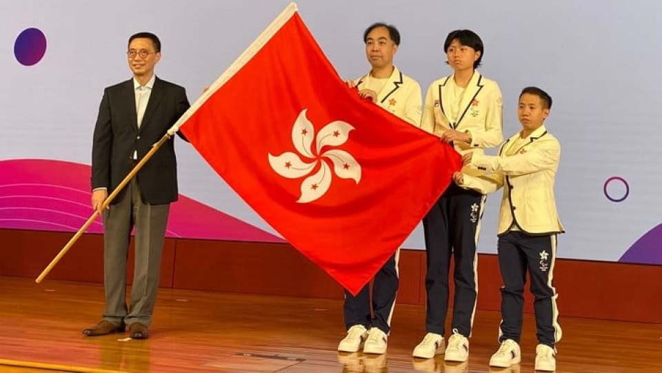 楊潤雄出席杭州亞殘運會授旗儀式。 他又指,政府亦通過香港體育學院為殘疾運動員提供全職訓練,又為相關精英運動項目提供額外資助。今年六月,與中國香港殘疾人奧委會合作展開了為期五年的“殘疾運動員就業及教育先導計劃”,讓殘疾運動員學習在退役後轉型發展所需的知識和技能,協助他們日後更易融入社會和發展“第二事業”。 中國香港代表團在2018年亞殘運贏得共11金16銀21銅。(完) 【編輯:李冉】