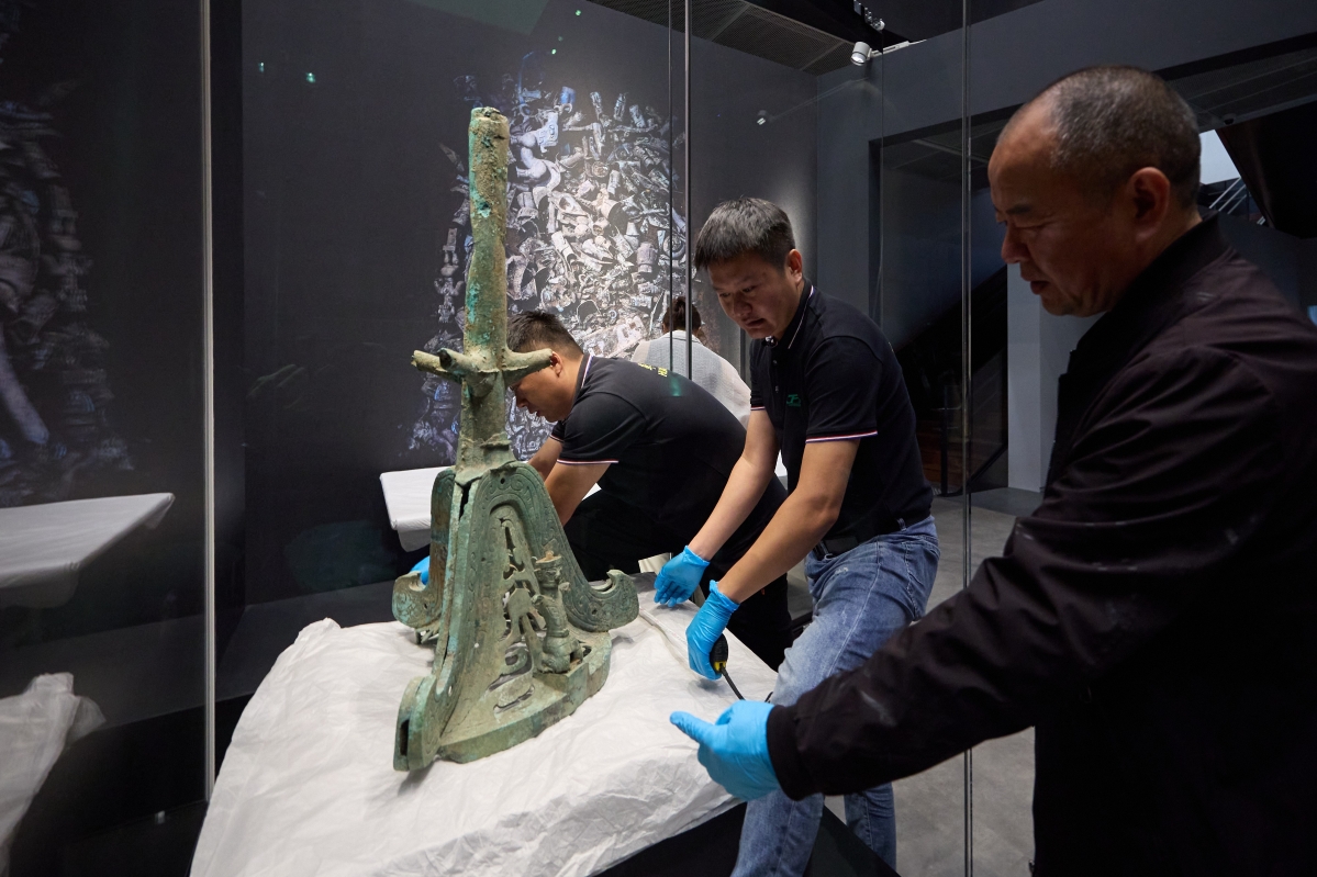 四川的布展團隊,連同香港故宮文化博物館布展團隊開箱點交、檢查及安裝文物。 展覽聚焦以三星堆遺址為代表的四川地區考古新發現,展出的120件出土自成都平原地區的三星堆、金沙和寶墩等遺址、距今2,600至4,500年的青銅器、玉器、金器及陶器等珍貴文物。120件展品中包括23件國家一級文物,以及55件為2020至2022年間三星堆遺址最新發掘的重要文物,大部分更是首次在四川省外展出。“凝視三星堆”特別展覽探索古代中國不同地區、不同民族的生活和他們之間的文化交流,以及成都平原地區的物質文化與精神生活、藝術造詣與技術成就,彰顯博物館致力弘揚中華文化的使命。