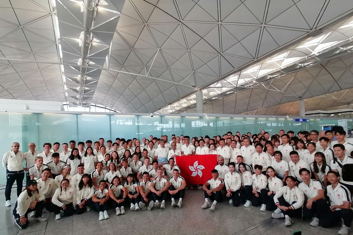 中國香港代表團部分成員今早(21日)在香港國際機場出發前往杭州。香港中通社記者 洪少葵 港隊今屆亞運會派出940人代表團出戰,當中包括660名運動員,參與40個體育項目。當中游泳項目,港隊派出37人代表團,爭取突破上屆1銀2銅的成績,其中“香港女飛魚”何詩蓓,將會出戰4個個人項目。奪牌希望之一的羽毛球項目今屆派出20人,當中包括伍家朗、李卓耀、鄧俊文及謝影雪等。 而劍擊隊則派出24人分別出戰重劍、佩劍和花劍的個人和團體賽,力求取得亞運金牌“零的突破”。當中曾在2020東京奧運會男子花劍個人項目“一劍封王”的張家朗,成為奪冠大熱,他表示,目標是在個人賽和團體賽拿金牌,特別是團體賽,希望能夠與隊友爭取佳績。 三項鐵人項目方面,港隊會派出6人出戰男、女子個人和混合接力賽,希望突破上屆一面銅牌的成績。至於在職業拳賽曾經創出22連勝、被稱為“神奇小子”的曹星如,是唯一出戰亞運拳擊項目的港隊代表,今次亦是其首次登上亞運擂台。曹星如將參加男子57公斤級別賽事,他表示希望能夠為港隊取得獎牌。 至於馬術項目方面,中國香港馬術總會共派出11對人馬組合出戰,是歷屆最龐大陣容,並破天荒組出戰所有馬術項目。其中上屆盛裝舞步金牌得主蕭頴瑩力爭衛冕。而上屆獎牌大戶單車隊,今屆將會派出20名車手。