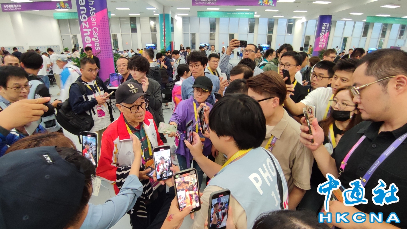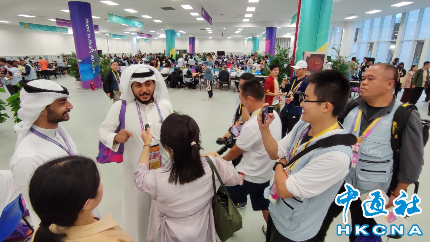 香港中通社記者 洪少葵 攝 Albaqous對記者表示,儘管才剛到杭州一天,還未來得及去城市觀光,但從機場到亞運村的路上,杭州的歡迎儀式就已經令他感受到這是個令人驚嘆的城市。 “我們百分百確定,這是個會成功的賽事,中國有能力辦好這場比賽。”Albaqous回憶,自2008年奧運會,中國就向世界交付了一場令人驚嘆的賽事。2022年的北京冬奧會是沙特阿拉伯第一次派運動員參加,所以他們更確定這次也是會成功的賽事。 至於媒體中心,他認為擁有很棒的設施。他們每天都會來到媒體中心,這里提供所有他們需要的服務,很方便;也認識來自其他媒體機構的同行。 對於這次報道他們會專注哪些方面,他透露,除了專注於沙特阿拉伯代表團參與的項目外,還會關注這個城市及環境等。至於為何穿中國品牌李寧,他則指,因為和這個品牌有合作,並稱讚質量很好。
