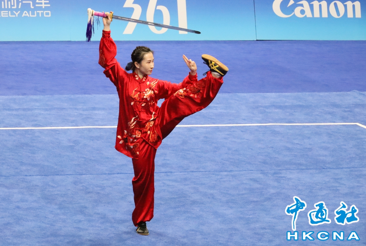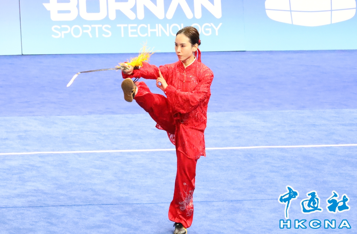 陳穗津。香港中通社記者 洪少葵 攝 武術女子太極拳太極劍全能項目在蕭山瓜瀝文體中心舉行,陳穗津上午在太極拳項目中取得9.746分,總成績排第二。下午在太極劍項目中獲得9.730分,被汶萊選手反超,以總分19.476分奪得銅牌。文化體育及旅遊局局長楊潤雄恭賀陳穗津奪得銅牌,大讚她武藝超卓,贏得奬牌實至名歸,為她感到驕傲。同時亦祝願香港運動員繼續揚威杭州亞運。 而國家隊的童心以19.696分奪得金牌。另一名港隊成員、上屆銀牌得主莫宛螢,遺憾失落獎牌。她賽後感觸落淚,指失落獎牌並非失敗,而是下次賽事成長的機會。