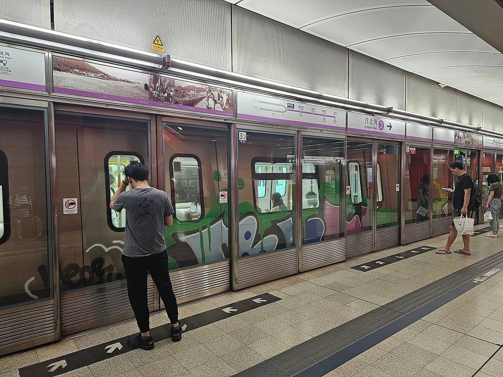 香港新聞網9月25日電 香港網絡昨日(24日)流傳多張圖片,港鐵將軍澳綫有列車遭人塗鴉,大面積車身被噴上五顏六色的英文字及圖案。列車疑因來不及清洗而繼續載客,於月台候車的不少乘客均留意到港鐵“新衣”。 港鐵表示,破壞公物包括塗鴉是刑事罪行,呼籲公眾愛惜鐵路設施,不要以身試法。