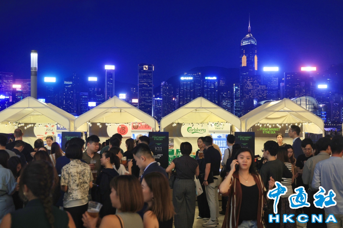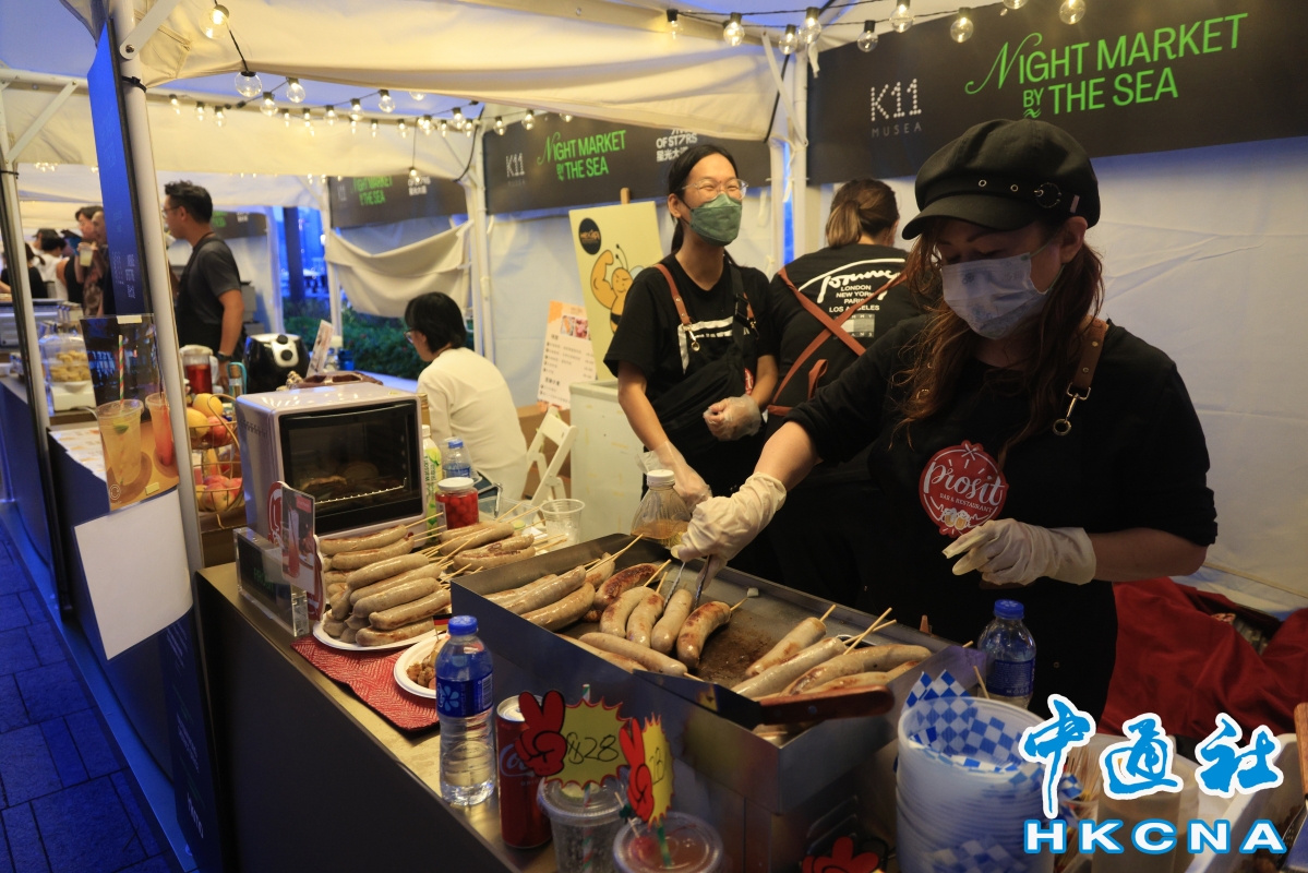 香港中通社9月25日電(譚暢)為推動夜經濟,香港星光大道與K11 MUSEA合辦文化海濱市集 “星光夜市”,於9月22日正式開幕。一連三個晚上,現場人頭湧動,市民和攤主都形容比預期的要熱鬧很多。 維港海邊,沿著海岸線的人行步道,搭起了一個個白色小篷。一個小篷,便是一個夜市攤位。放眼望去,整齊排布著近30個攤位,鵝黃色的燈光由內傾瀉而出,像是為維港的夜晚點綴了不同的星光。