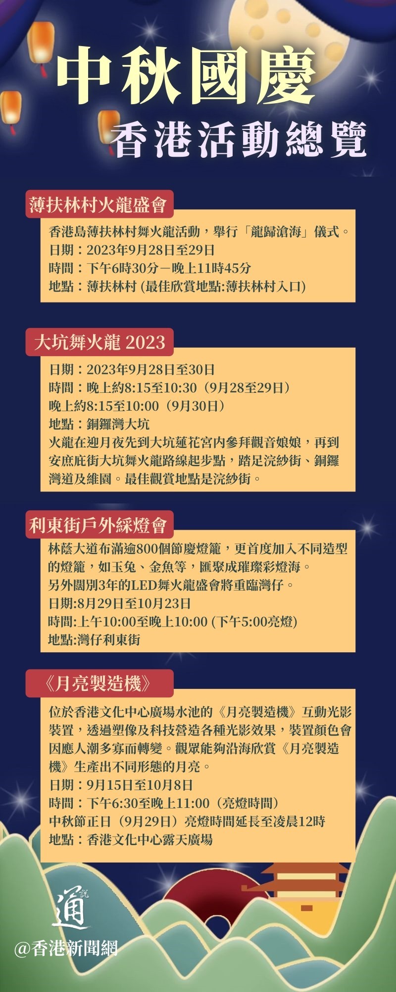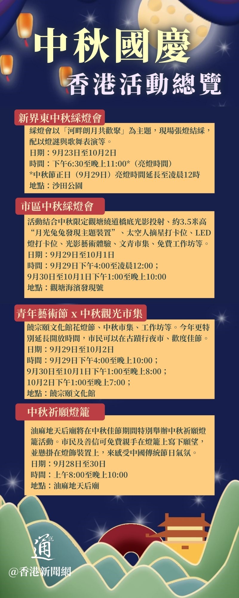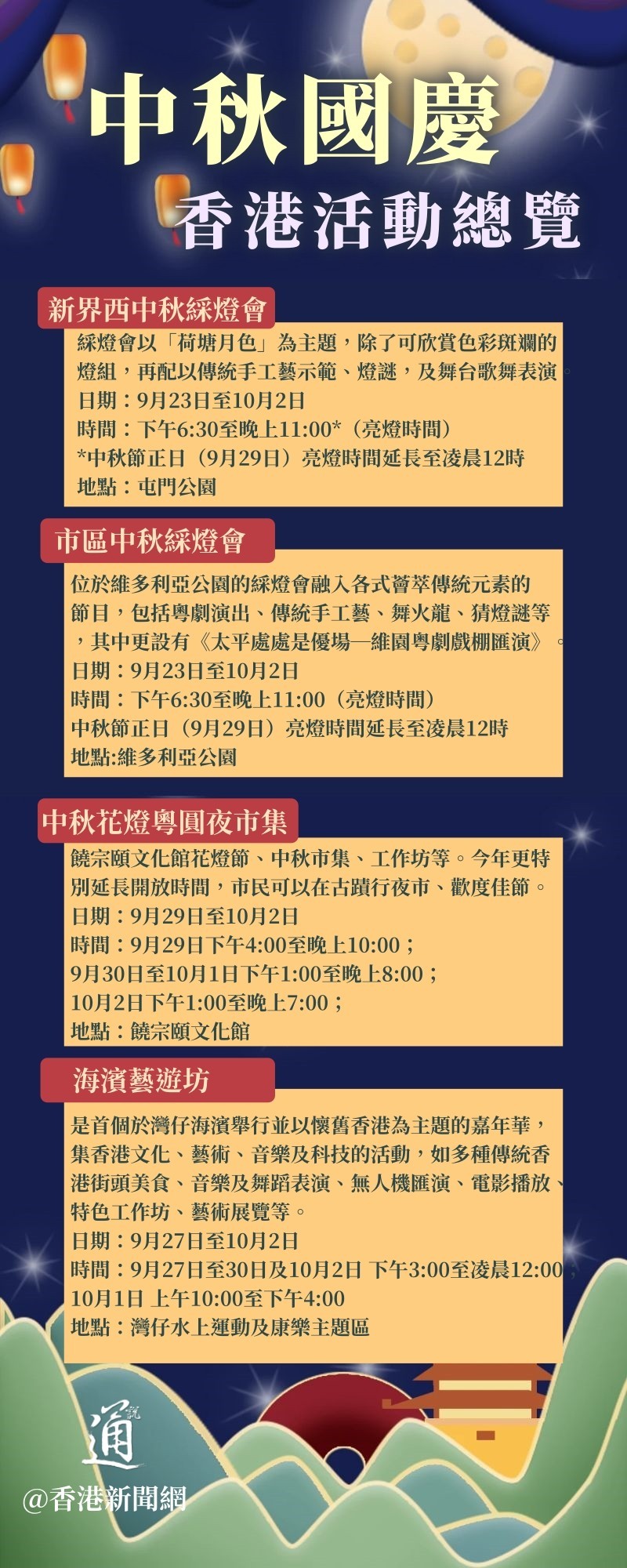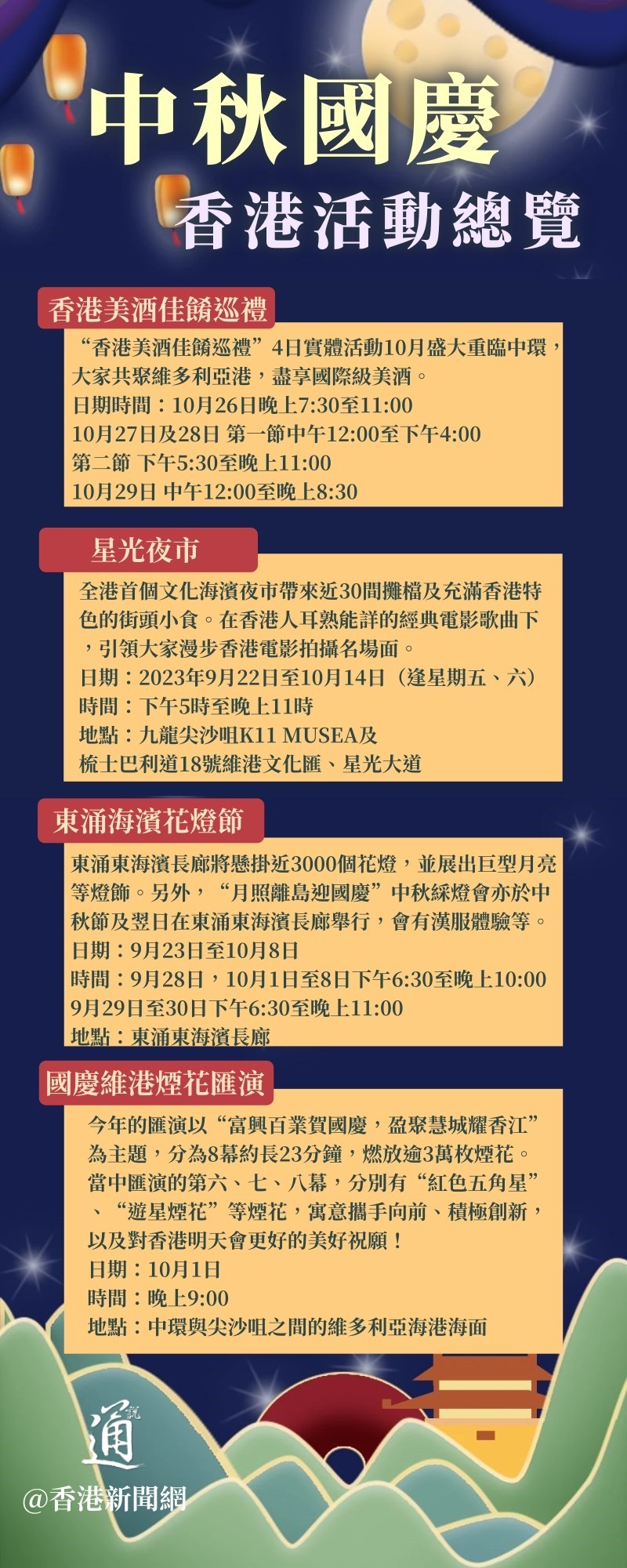中秋加國慶,內地喜迎八天長假,香港也將迎來三天小長假。作為通關後的首個國慶假期,香港早已準備就緒,一系列福利和活動推出,希望大家能愉快過節。