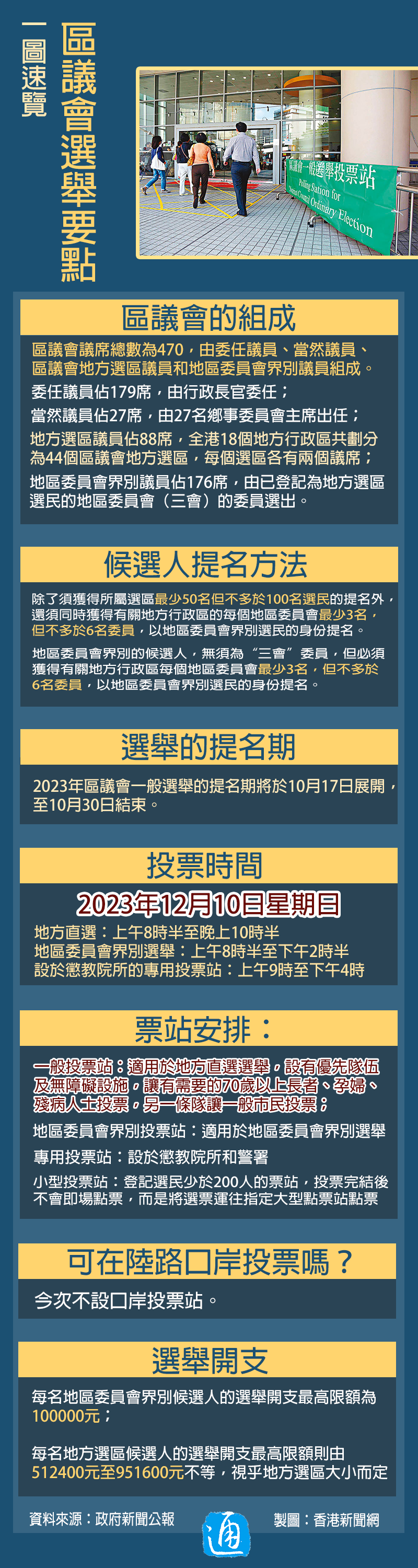 香港新聞網9月29日電 香港第七屆區議會選舉將在12月10日舉行。選舉管理委員會昨日(28日)召開記者會,公布區議會選舉活動指引。今屆區議會的組成是什麼?候選人如何提名?選民可於何時投票?戳圖速覽!