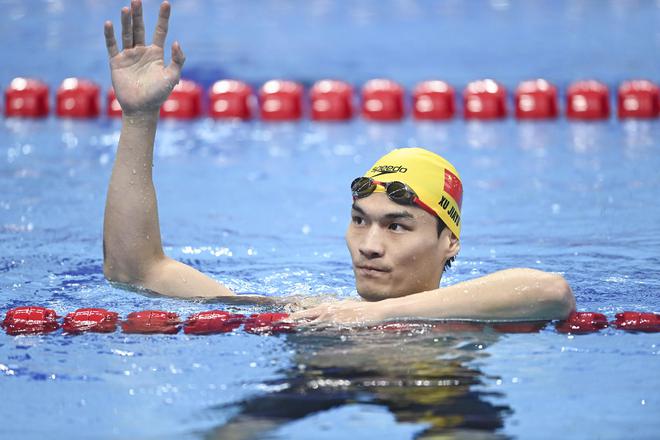 9月29日,中國選手徐嘉餘在決賽後。新華社 此前已在本屆亞運會上收穫3金2銀1銅的潘展樂,在當天的男子400米自由泳決賽中,以3分48秒81的成績再添1銀。韓國選手金禹旻獲得冠軍,越南選手阮輝煌收穫季軍。 男子200米蝶泳決賽中,日本選手本多燈以創賽會紀錄的1分53秒15奪冠,中國台北選手王冠閎和中國選手陳俊兒分獲銀牌和銅牌。 女子4X100米混合泳接力決賽中,東道主中國隊因為預賽犯規而缺席。最終前三名分別歸屬於日本隊、韓國隊和中國香港隊。 本屆亞運會游泳比賽共產生了八項新的亞洲紀錄,中國隊泳將創造了其中的六項。(完) 【編輯:紀東】