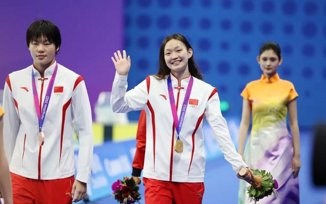 覃海洋(左)、孫佳俊奪得男子50米蛙泳冠、亞軍。新京報 5破亞洲紀錄,人才厚度很可喜 創下亞運會最佳戰績的同時,中國泳軍的多枚金牌頗具含金量——個人單項上,汪順在男子200米個人混合泳、潘展樂在男子100米自由泳、唐錢婷在女子50米蛙泳均打破亞洲紀錄;接力項目上中國隊也刷新了男子4×100米混合泳接力與男女混合4×100米混合泳接力的亞洲紀錄。 目前中國泳軍不僅擁有“蝶後”、“蛙王”這樣的明星選手,老夥計們也都展現了更出色的狀態,年近30歲的東京奧運會冠軍汪順證明了“年齡只是一個數字”;28歲的徐嘉餘不僅包攬男子仰泳50米、100米、200米金牌,在中國隊打破亞洲紀錄的兩個接力項目裡,開棒的他都有著“世界級表現”,為團隊最終奪冠打下基礎;經歷兩次複出的葉詩文也以亞運會1金1銀的成績令人們看到堅持的力量。 與此同時,隊伍的中堅力量值得信賴,另一位“勞模”李冰潔收穫了5金1銀,她拿下了女子400米、800米、1500米自由泳金牌,只是在200米自由泳決賽的爭奪裡惜敗於中國香港名將何詩蓓。 在老將和中堅力量的帶動下,中國泳軍新生力量的成長速度值得欣喜。19歲的潘展樂、萬樂天,18歲的王浩宇和餘依婷,17歲的馬永慧等年輕選手都嶄露頭角。接力項目爭奪裡,中國隊如今可以在預賽與決賽排出兩套均具有競爭力的陣容,被泳迷們戲稱“沒打過這麼富裕的仗”,足以顯現中國游泳如今的人才厚度。