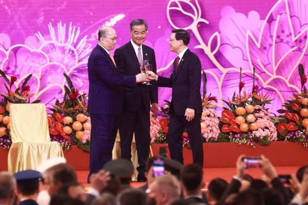 香港中通社10月1日電(記者 崔靜雯)香港特區政府10月1日舉行酒會,慶祝中華人民共和國成立74周年。行政長官李家超表示,在強國建設、民族復興的征程上,國家堅持開放、全面推動高質量發展,為香港帶來源源不絕的機遇。讓我們團結一致,為中國式現代化強國建設,為中華民族偉大復興,為香港長期繁榮穩定,作出貢獻。