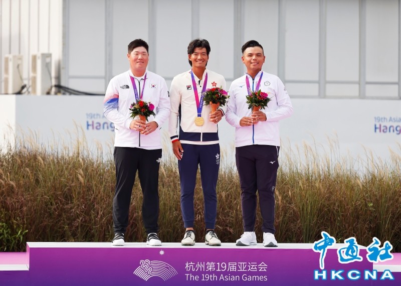 圖為中國香港選手許龍一(中)在領獎台上獲得銀牌的韓國選手任成宰(左一)、獲得銅牌的中國台北選手洪健堯合影。 高爾夫球賽事當日進行4項決賽。港隊徐龍一在男子個人賽決賽輪奪金;而男子團體賽決賽輪港隊奪銅。這是港隊在亞運高爾夫球項目獲得的首兩面獎牌。 女子個人賽中,港隊韓紫琳及劉弦並列第14名;女子團體賽排位得第7,無緣獎牌。 當晚,港隊男足在男子組前8名決賽中對陣伊朗,以1比0的戰績歷史性晉級半決賽。 兩隊半場踢成0比0,換邊後2分鐘,港隊安永佳接應遠傳,潘沛軒在禁區起腳射入,為港隊打破僵局。伊朗全場組織多次有威脅攻勢,但都未能突破港隊防線,門將謝家榮亦多次成功撲救,港隊最終以1比0贏球,10月4日將與日本隊爭入決賽。 今日,港隊多個項目距決賽僅一步之差。包括男子500米4人獨木舟中,港隊派出郭嘉煒、莫元峰、張朗然和蔡奕伸出戰初賽,劃出1分38秒1,以小組第5名晉級半決賽。半決賽他們劃出1分37秒696,落後第三名的泰國隊不足0.5秒,獲第四名,未能晉身決賽。 港隊今日出戰多個田徑項目,在女子200米初賽,李紫桃跑岀24秒89,小組第5,無緣躋身決賽。石錦程在男子200米初賽跑出21秒99的成績,在32名跑手中,總成績排名第21;陳俊浩跑出22秒12,總成績排第23;同樣未能躋身半決賽。男子110米欄初賽中,梅政揚及李家耀,分別跑岀14秒04及14秒20,在各自小組排第6,亦未能晉級。 港隊在上屆亞運共獲46枚獎牌,包括8金18銀20銅。賽事過半,港隊距上屆僅差6枚獎牌。(完) 【編輯:馬華】