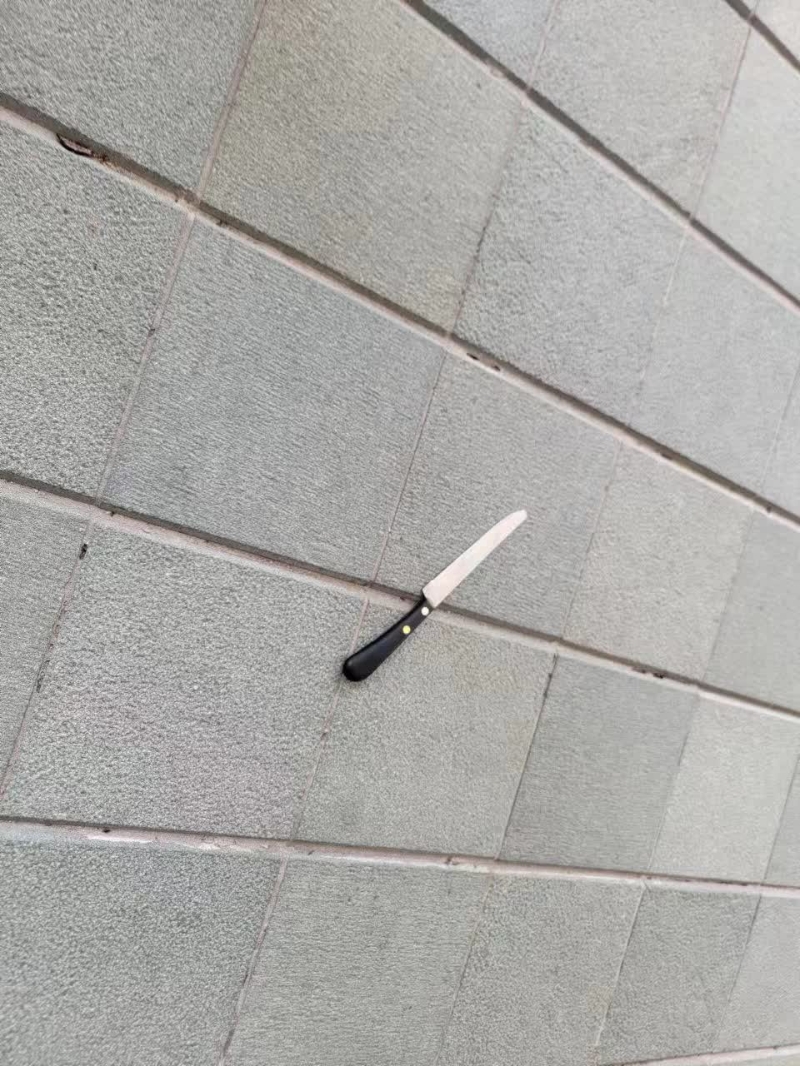 現場遺下一把生果刀。圖源:點新聞 警方接報趕至並將少年拘捕,案件暫列作傷人案處理。案件交由中區重案組接手調查。 特區政府隨後發聲明指,強烈譴責有關暴力行為,並強調警方會徹查案件,執法必嚴、違法必究。發言人表示,香港是法治社會,絕不容忍任何暴力行為,對所有違法行為必定追究到底。在事件發生後,行政署已指示政府總部的保安人員繼續提高警覺,而警方亦在政府總部一帶加強巡邏,以保障政府總部職員、訪客和市民的安全。政府向受傷的保安人員致以慰問,並祝願他們早日康復。(完) 【編輯:孟宜君】